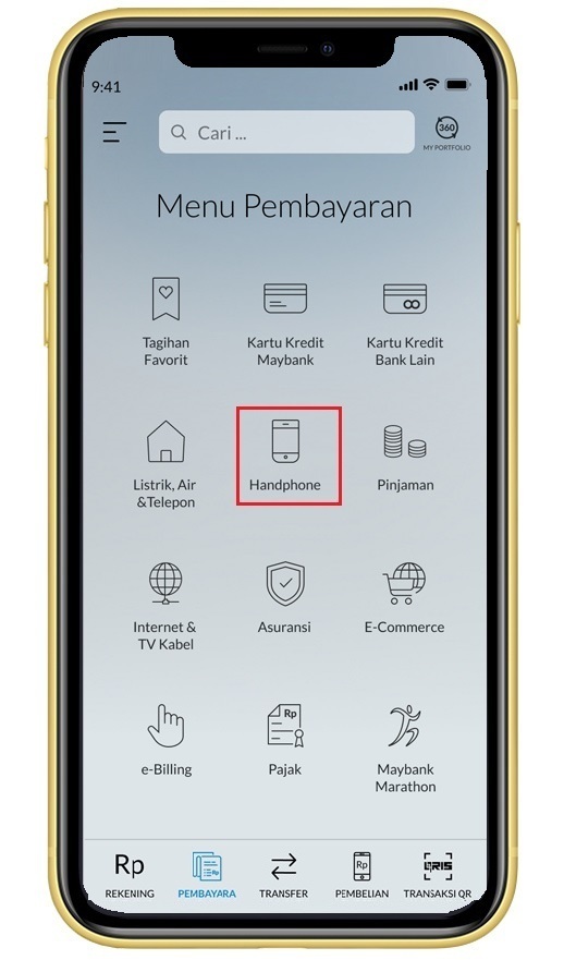 Klik pilihan menu pembayaran ‘Handphone’ |