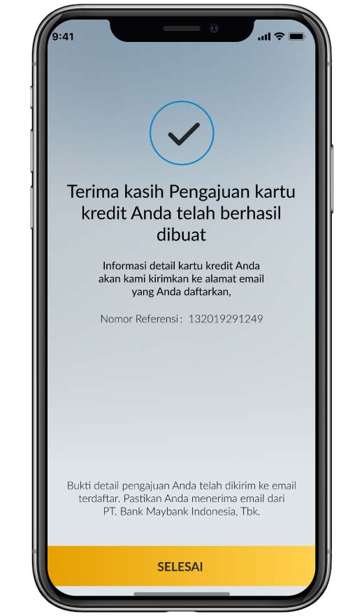 Proses pengajuan Maybank Kartu Kredit telah selesai. |
