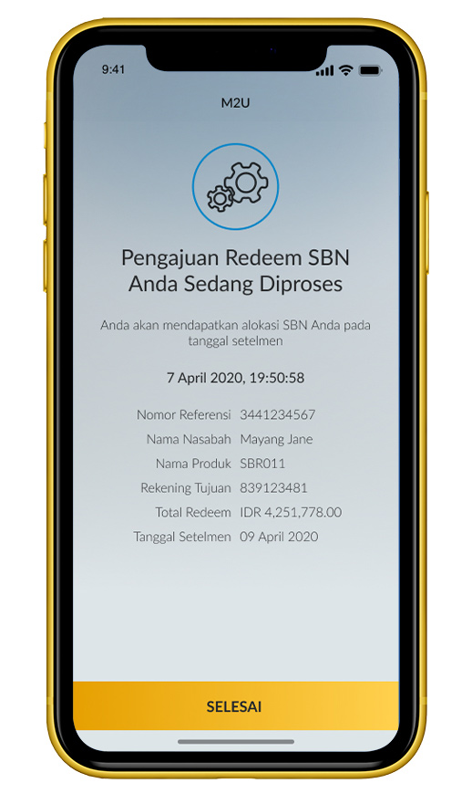 Pemesanan SBN Anda berhasil. Klik ‘Selesai’