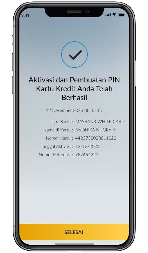 Aktivasi dan pembuatan PIN kartu kredit berhasil