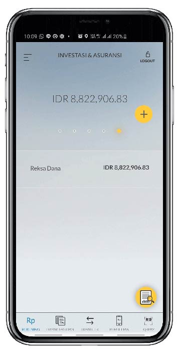 Klik tombol kuning ‘+’ produk Reksa Dana untuk tujuan pengalihan unit. Klik tombol (i) untuk info produk lebih lanjut