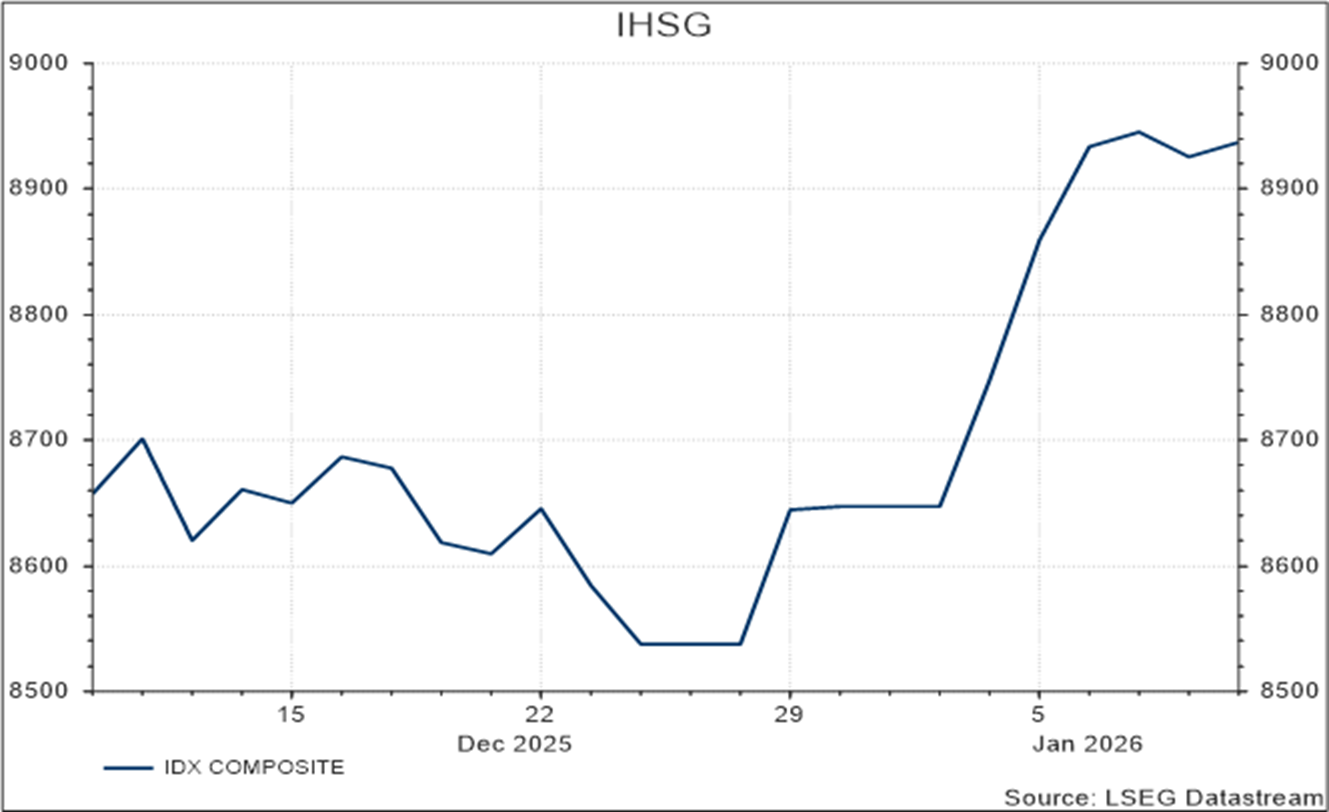 Indonesia mencatat inflasi tahunan yang lebih tinggi dari perkiraan pasar. Kenaikan inflasi ini terutama disebabkan oleh peningkatan harga pangan dan biaya perumahan. Meski demikian, tingkat inflasi tersebut masih berada dalam rentang target Bank Indonesia, sehingga tekanan terhadap kebijakan moneter relatif terkendali.