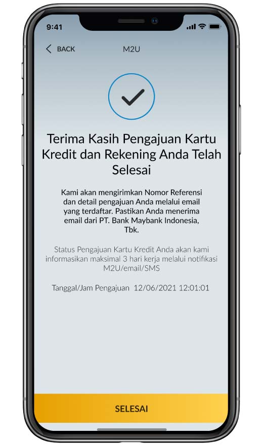 The application process has been completed. The application status will be informed via M2U ID App/email/SMS notification |