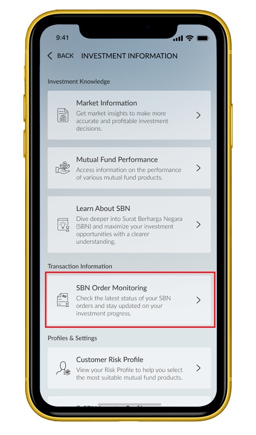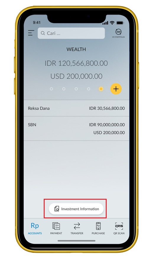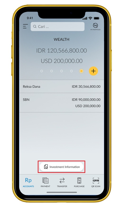 Tap the ‘Investment Information’ menu at the bottom of the screen