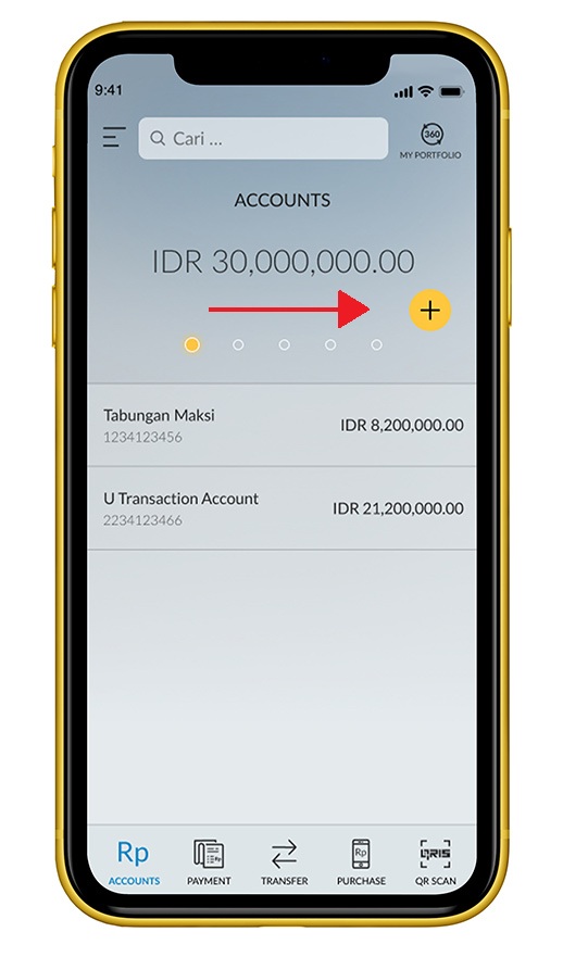 Log in to the M2U ID App. On the home screen, tap the ( + ) button