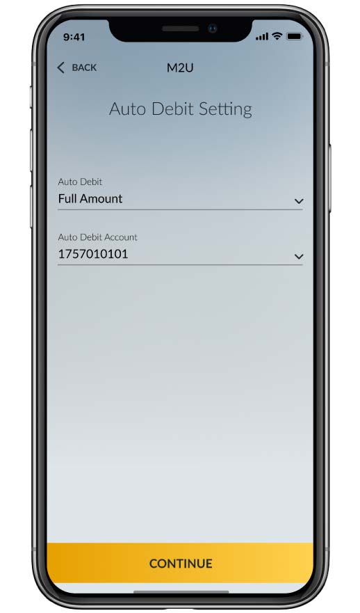 Select the amount and account option to pay your Maybank Credit Card bill through auto debit