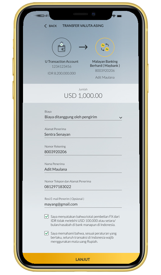 If the transaction is made by a foreign citizen (WNA), involves cross currency, or exceeds USD 10,000, fill out the Foreign Exchange Transaction Form (LLD): |
