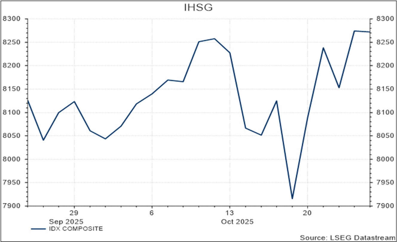 Penutupan sebagian pemerintahan AS masih berlangsung, memperpanjang periode tanpa data resmi (data blackout) sejak awal bulan. Namun, pasar kini menantikan rilis data inflasi (CPI) yang dijadwalkan pada Jumat malam dan menjadi publikasi pertama sejak shutdown dimulai. Konsensus pasar memperkirakan inflasi tahunan bertahan di sekitar 3,1%, mencerminkan tekanan harga yang masih persisten. Sementara itu, ketegangan dagang antara AS dan China tetap tinggi menjelang tenggat “Reciprocal Tariffs” pada November. Pertemuan antara Presiden Trump dan Presiden Xi yang dijadwalkan minggu depan membawa harapan akan kemajuan dalam negosiasi perdagangan, meski potensi perpanjangan tenggat waktu tetap terbuka.