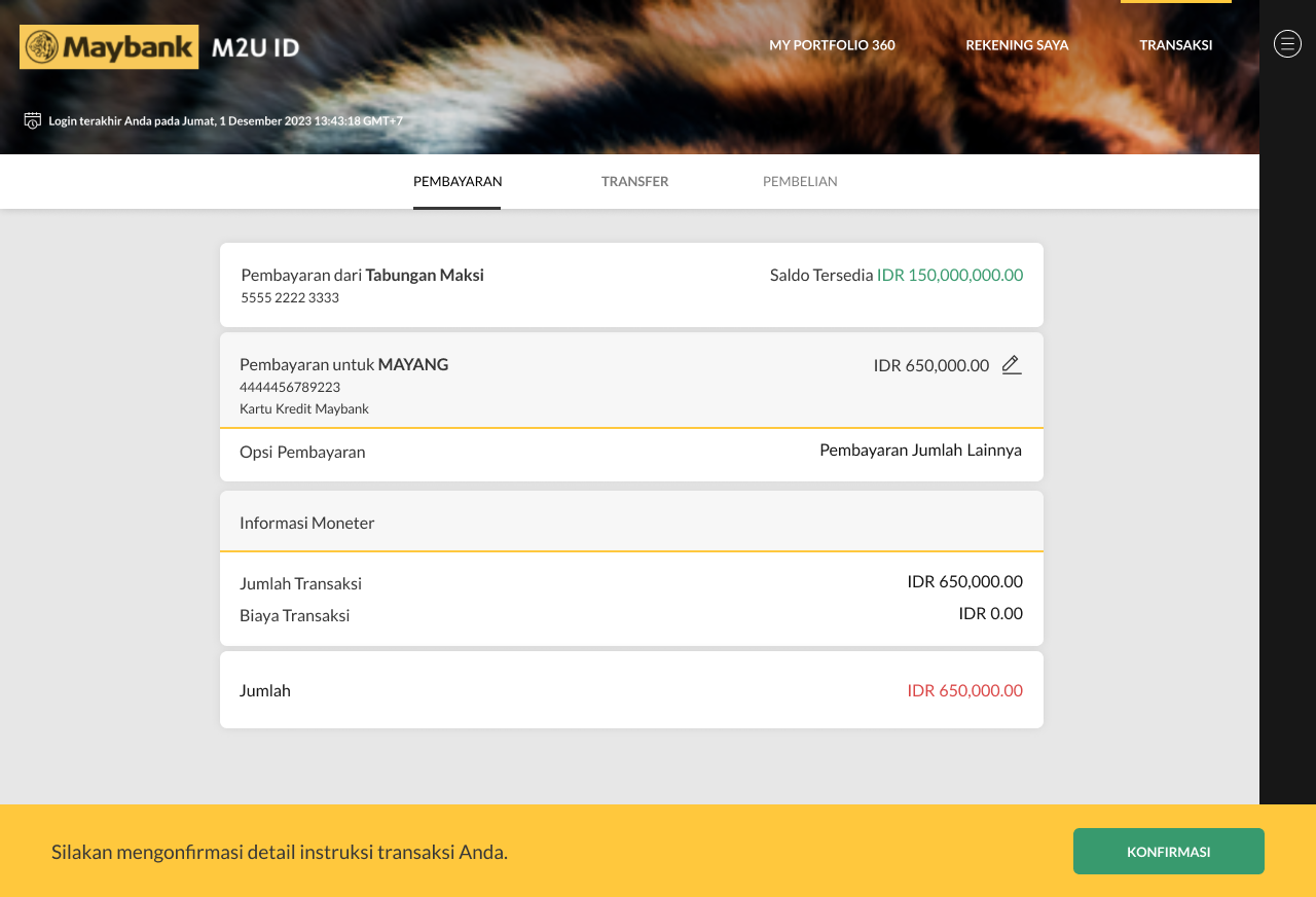 Cek detail transaksi. Apabila sudah sesuai klik “Konfirmasi” |