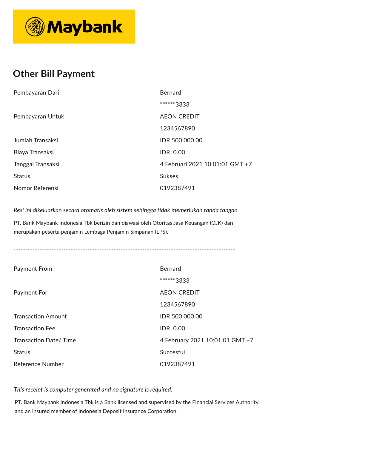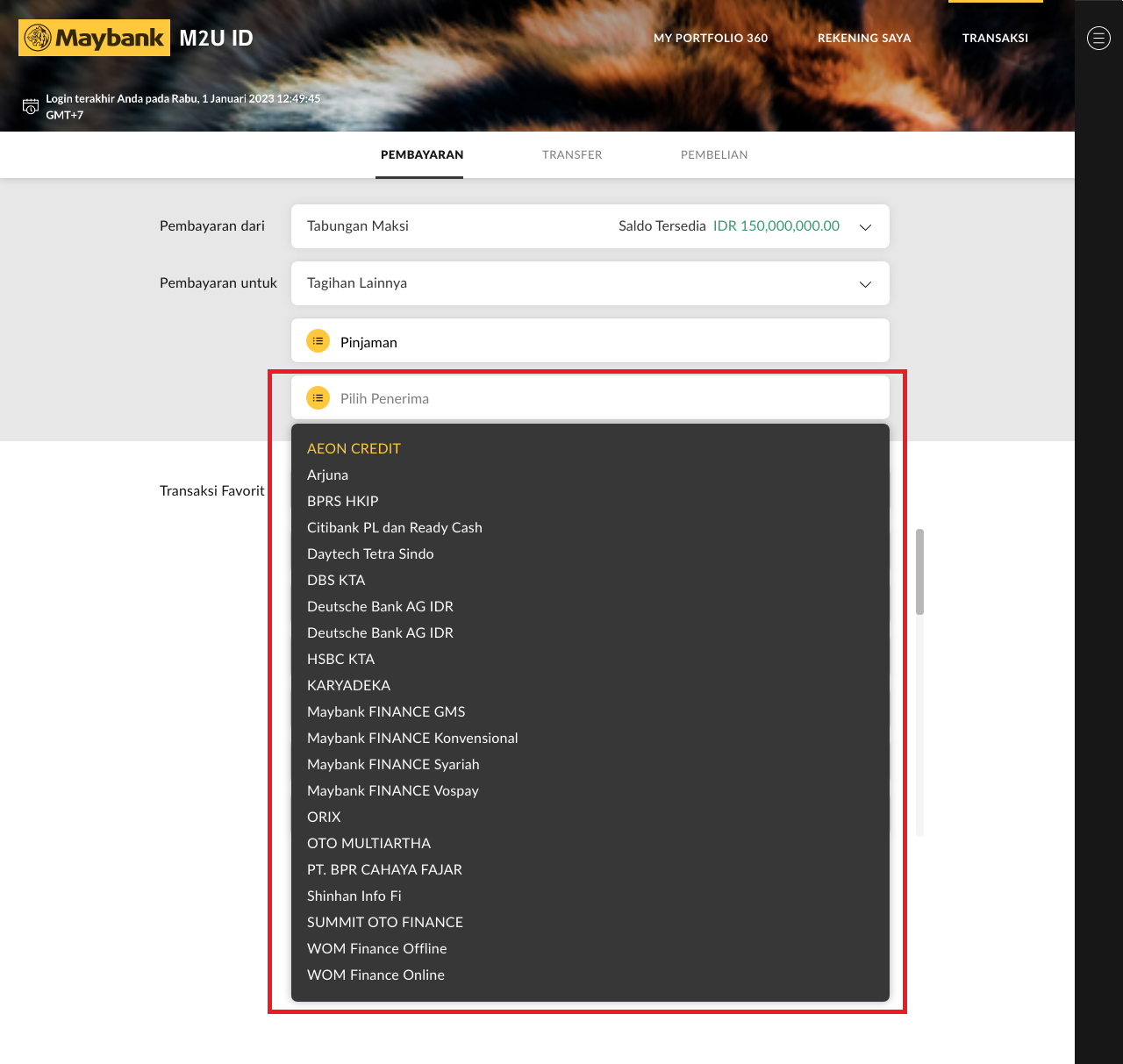 Bayar tagihan internet, paid TV, asuransi, pinjaman, tagihan rutin dan berlangganan lainnya jadi lebih mudah dan efisien melalui M2U ID Web (internet banking).