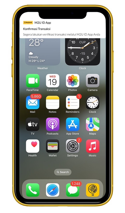 Konfirmasi akan dilakukan melalui M2U ID App. Buka notifikasi pop-up dari M2U ID App di smartphone Anda.