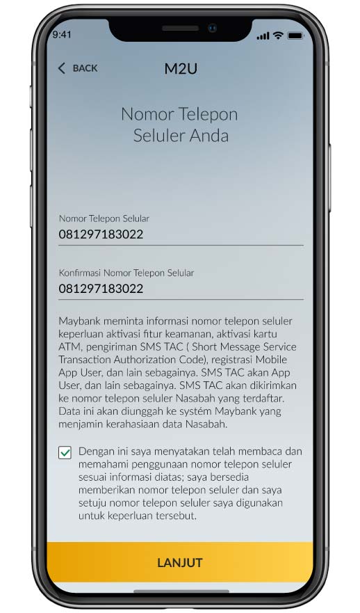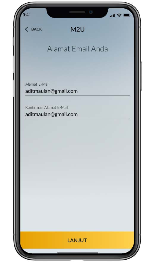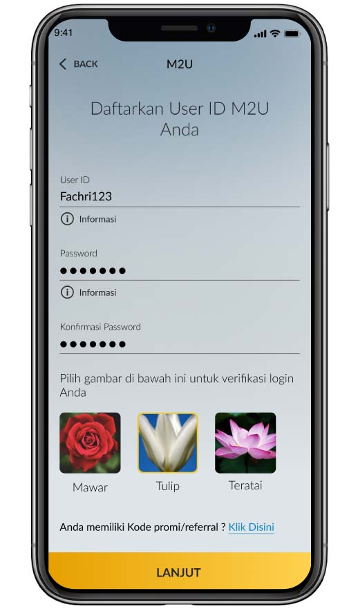 Buat user ID M2U ID App Kamu, kemudian klik “Lanjut" |