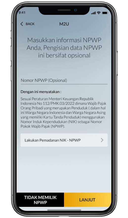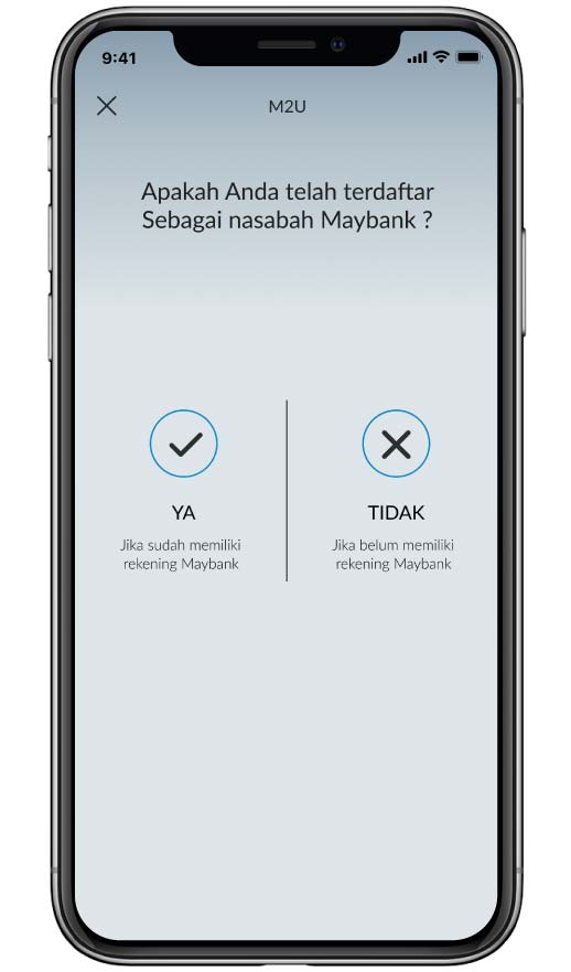 Klik opsi “Tidak” untuk konfirmasi bahwa Kamu bukan Nasabah lama |