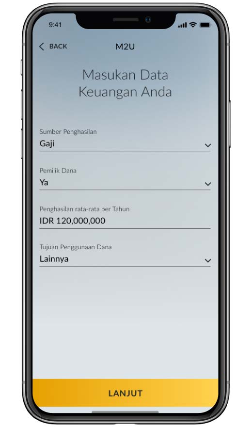 Masukkan informasi keuangan, kemudian klik “Lanjut” |