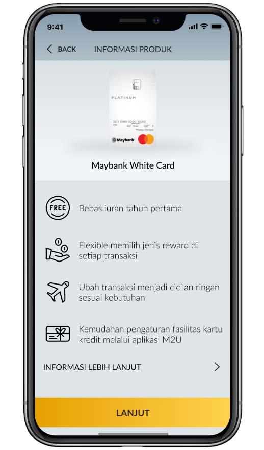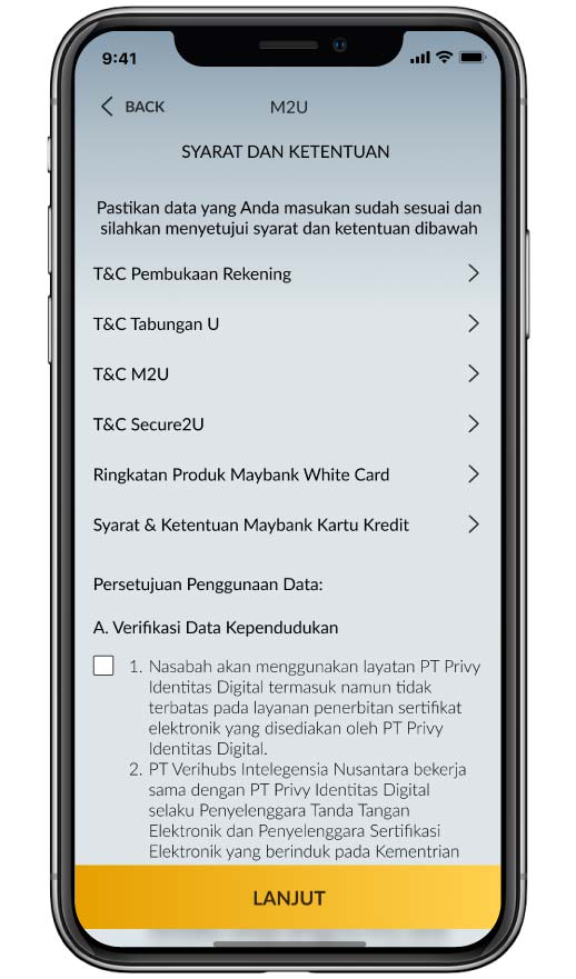 Pastikan Kamu telah membaca informasi produk Maybank Kartu Kredit dan Maybank Tabungan, kemudian klik “Lanjut” |