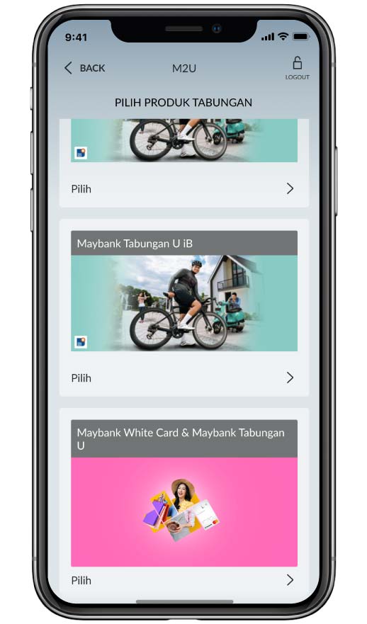 Pilih produk Maybank Kartu Kredit dan Maybank Tabungan |