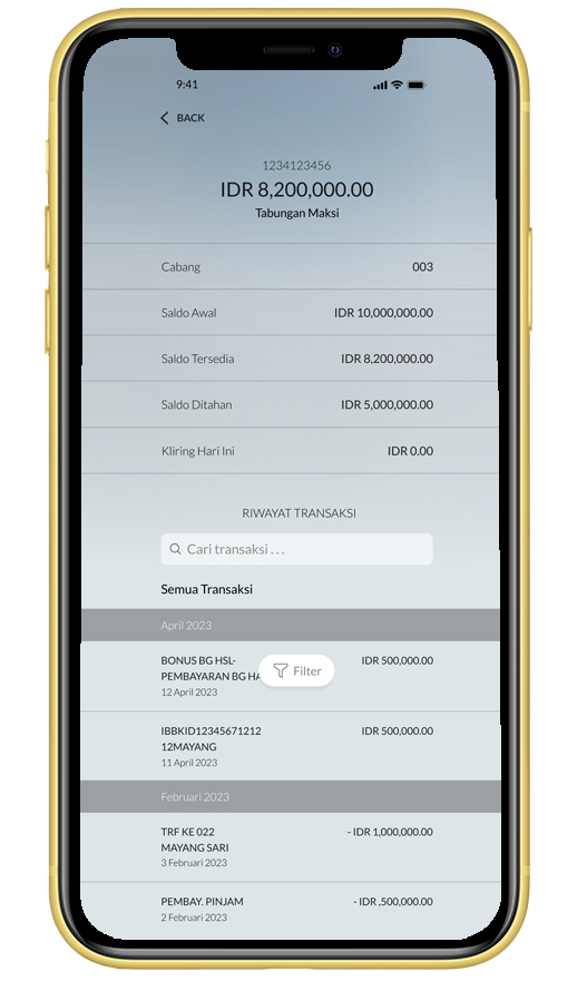 Klik icon filter untuk menyaring transaksi |