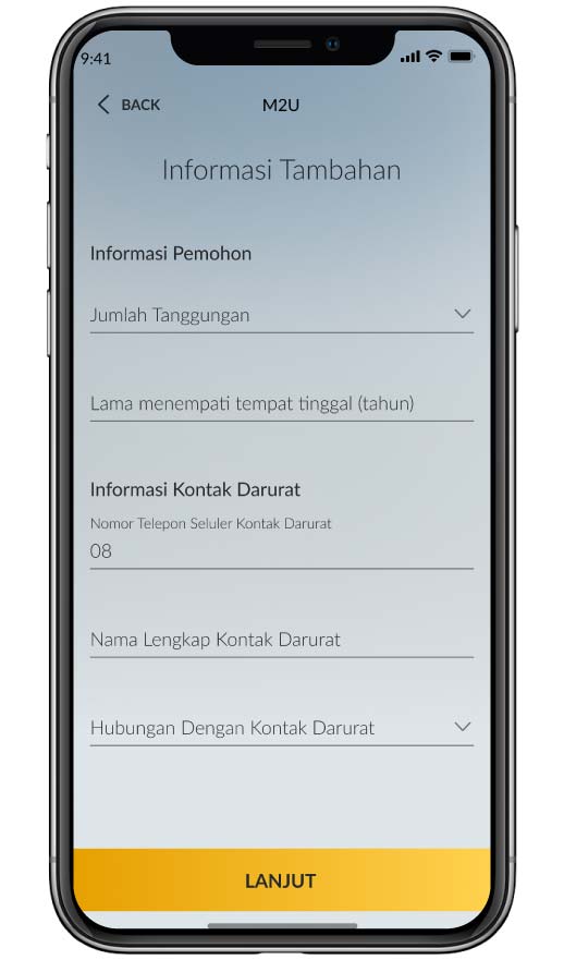 Lengkapi informasi tambahan dan klik “Lanjut”
