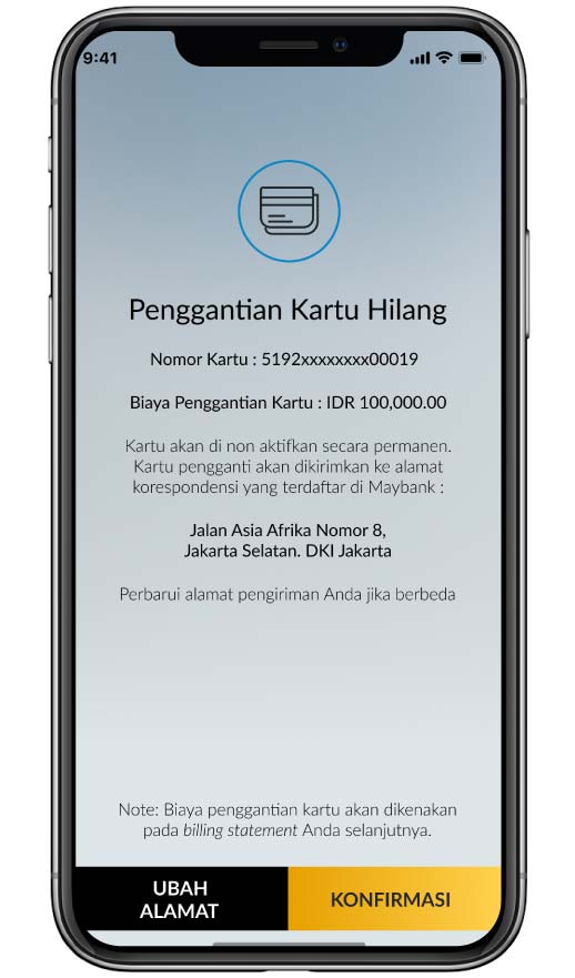 *Penggantian Kartu Kredit juga dapat diakses melalui burger menu dan pilih manajemen kartu