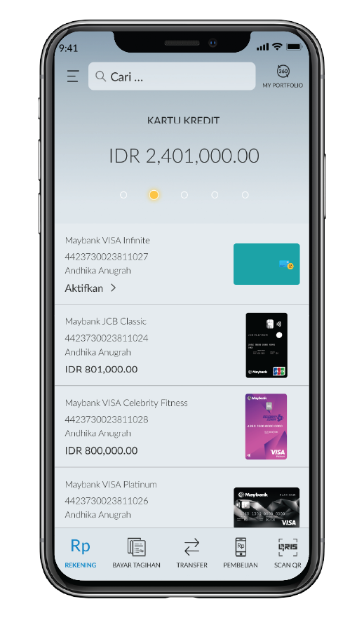Pada dasbor rekening, geser kiri ke dasbor kartu kredit dan Pilih kartu kredit yang ingin diajukan penggantian kartu nya