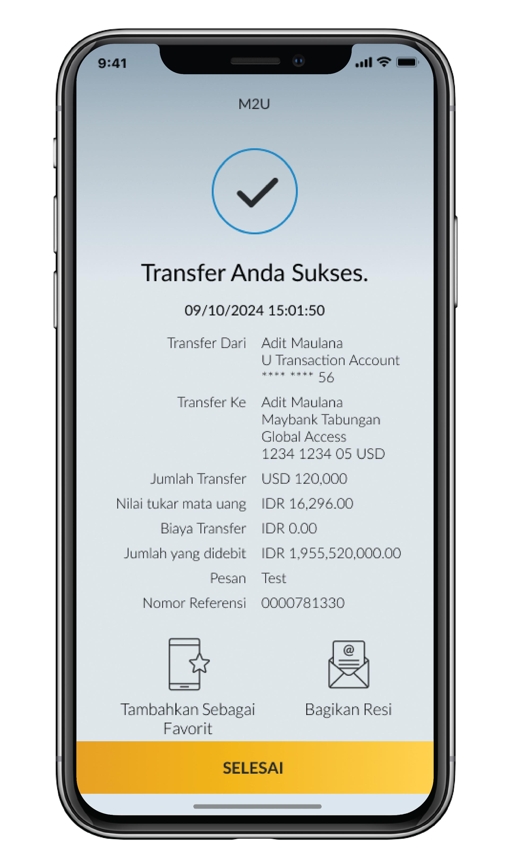 Untuk transaksi SWIFT di atas equivalent USD100,000 per bulan, mengikuti ketentuan Bank Indonesia (BI) yang berlaku dan untuk SWIFT Nasabah wajib upload dokumen pendukung melalui M2U ID App.